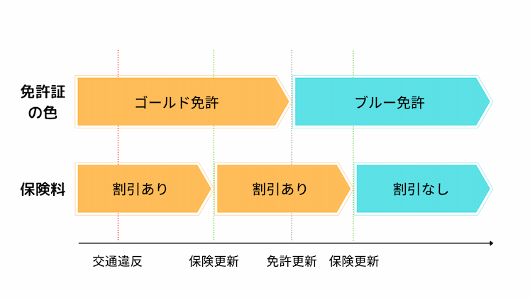 自動車保険は交通違反を起こし、反則金や罰金を支払うことになったからといって直ちに保険料が高くなるということはありません。しかし、多くの会社では記名被保険者がゴールド免許の場合は保険料を割引しています。違反によってゴールド免許でなくなったらその次の自動車保険の契約からゴールド免許割引が適用されずに保険料が高くなります。ゴールド免許からブルー免許になるのは免許証の更新のときなのでそれまでは安い保険料で契約できます。